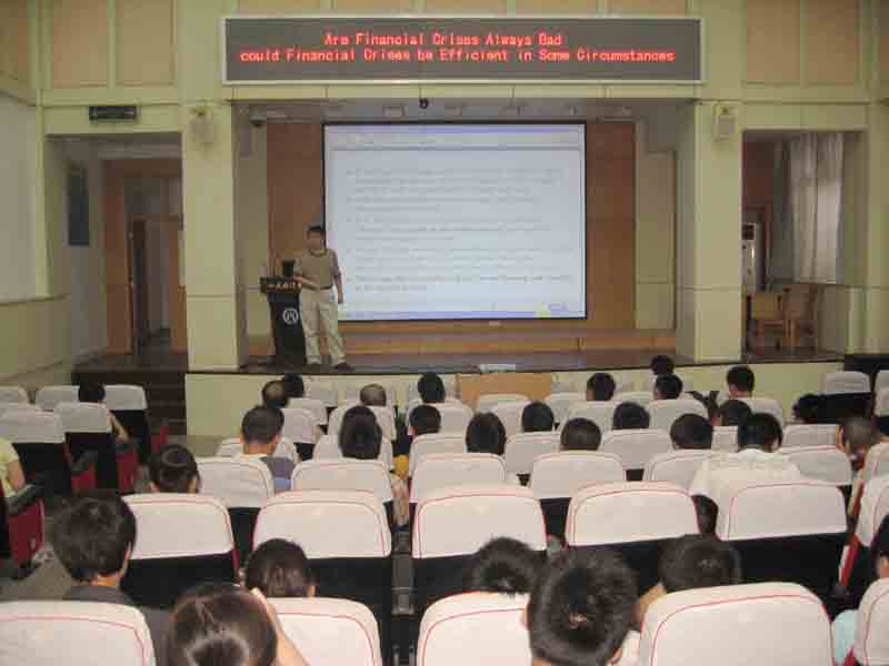 2009年6月16日下午,加拿大卡尔顿(Carleton)大学华裔终身教授张健康博士应邀来我中心作学术报告。张博士就金融危机有效性问题向山东省经济理论与政策研究中心的部分师生作了精彩演讲。张教授概述了此次金融危机对实体经济的影响,认为此次危机的根源在于美联储实施了长期的低利率政策,是“政府失灵”造成的,而不是流行的所谓华尔街“市场失灵”的结果;从经济理论的角度看,是经济学家有关中央银行理论与模型的滞后性研究所致。张博士认为,如何进一步完善中央银行干预理论与干预政策,将是今后一段时期内经济学家首先要解决的一个重要课题。